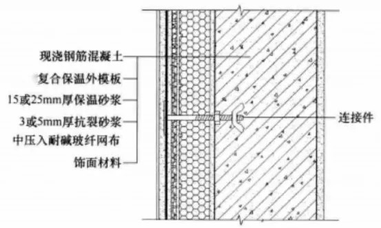 主要由復(fù)合保溫模板、防護(hù)與飾面層構(gòu)成。